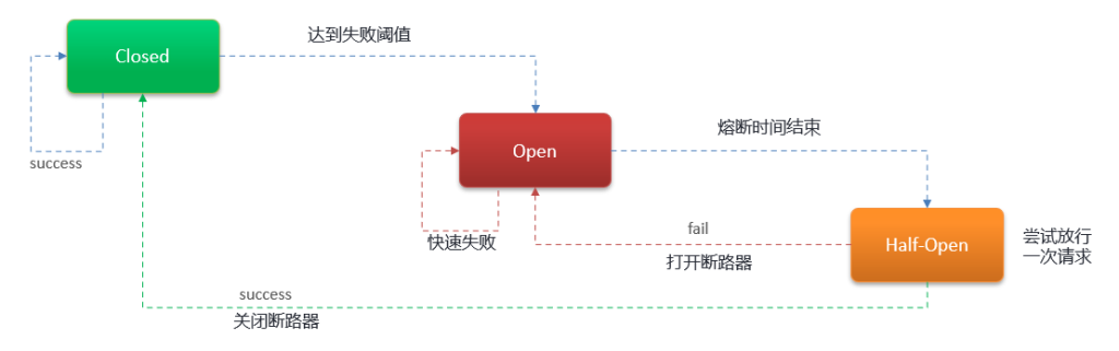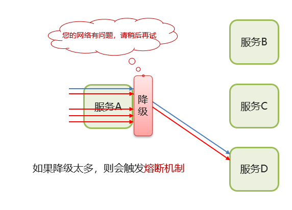 服务的降级与熔断 xiaojiuaigc@163.com 发布于 2024-10-29 499 次阅读 服务的降级 服务降级是服务自我保护的一种方式,或者保护下游服务的一种方式,用于确保服务不会受请求突增影响变得不可用,确保服务不会崩溃。 服务的熔断 Hystrix 熔断机制,用于监控微服务调用情况, 默认是关闭的,如果需要开启需要在引导类上添加注解:@EnableCircuitBreaker如果检测到 10 秒内请求的失败率超过 50%,就触发熔断机制。之后每隔 5 秒重新尝试请求微服务,如果微服务不能响应,继续走熔断机制。如果微服务可达,则关闭熔断机制,恢复正常请求
